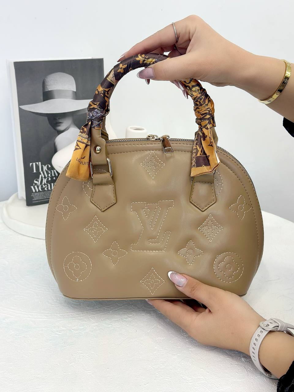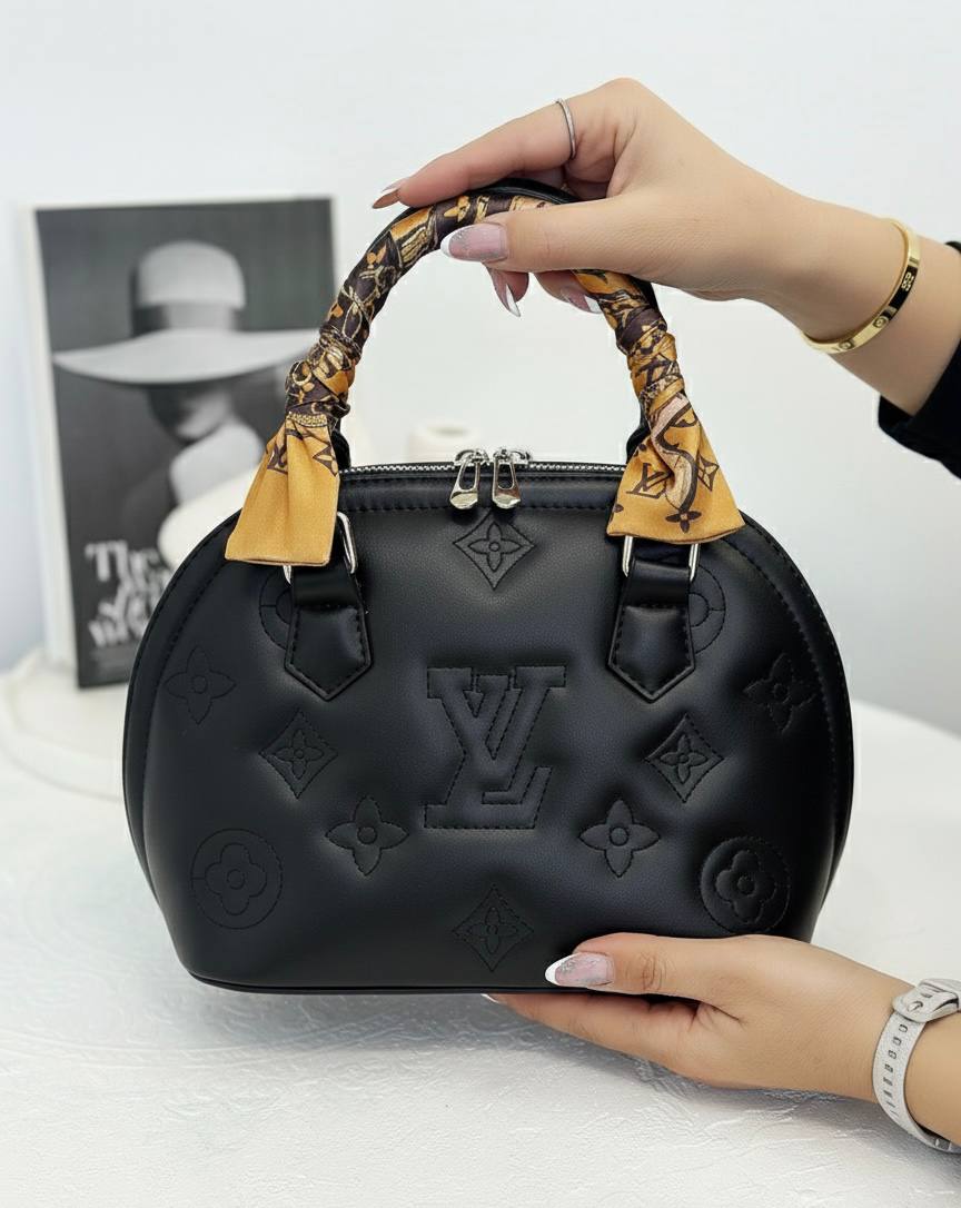 کیف نیم گرد گلدوزی ال وی 👜دسته دار 👜اسکراف دار 👜تک خونه 👜یک زیپ کوچک داخلی 👜بند بلند قابل تنظیم 👜ابعاد30*20